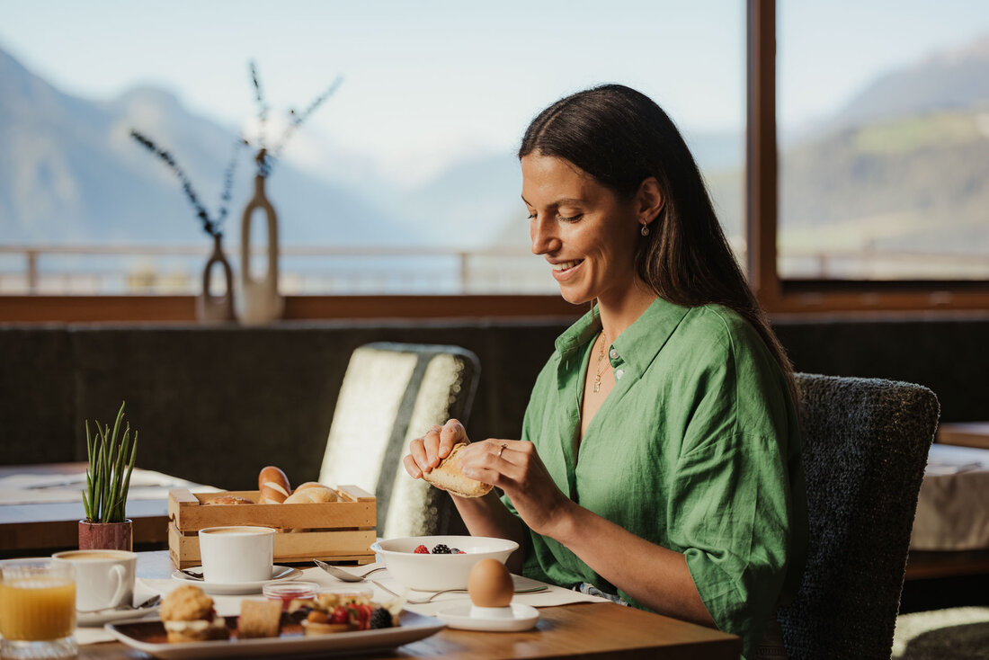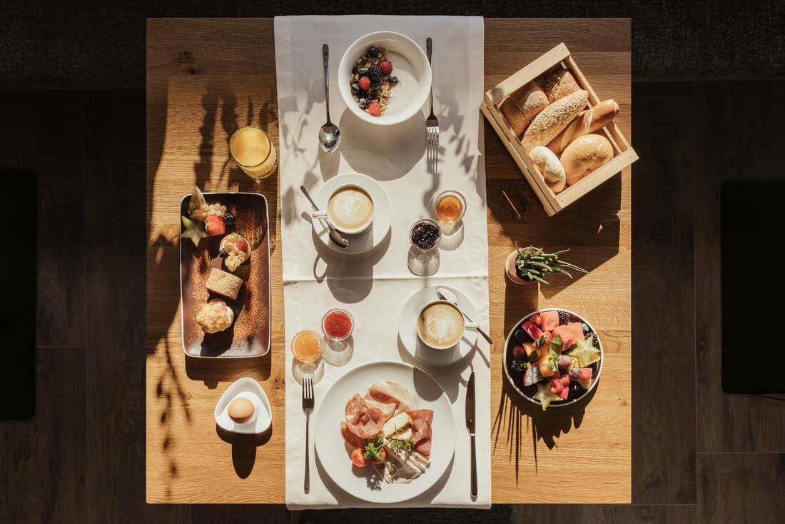 - L'inizio di giornata perfetto: il leggendario buffet di prima colazione del Feldmessner con molti prodotti fatti in casa e a km 0
